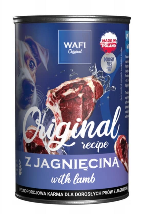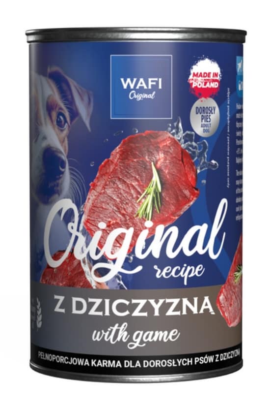 Skład: mięso i produkty pochodzenia zwierzęcego (w tym 4% mięso z dorbiu), mąka ryżowa, 0,2% olej lniany, bulion, składniki mineralne